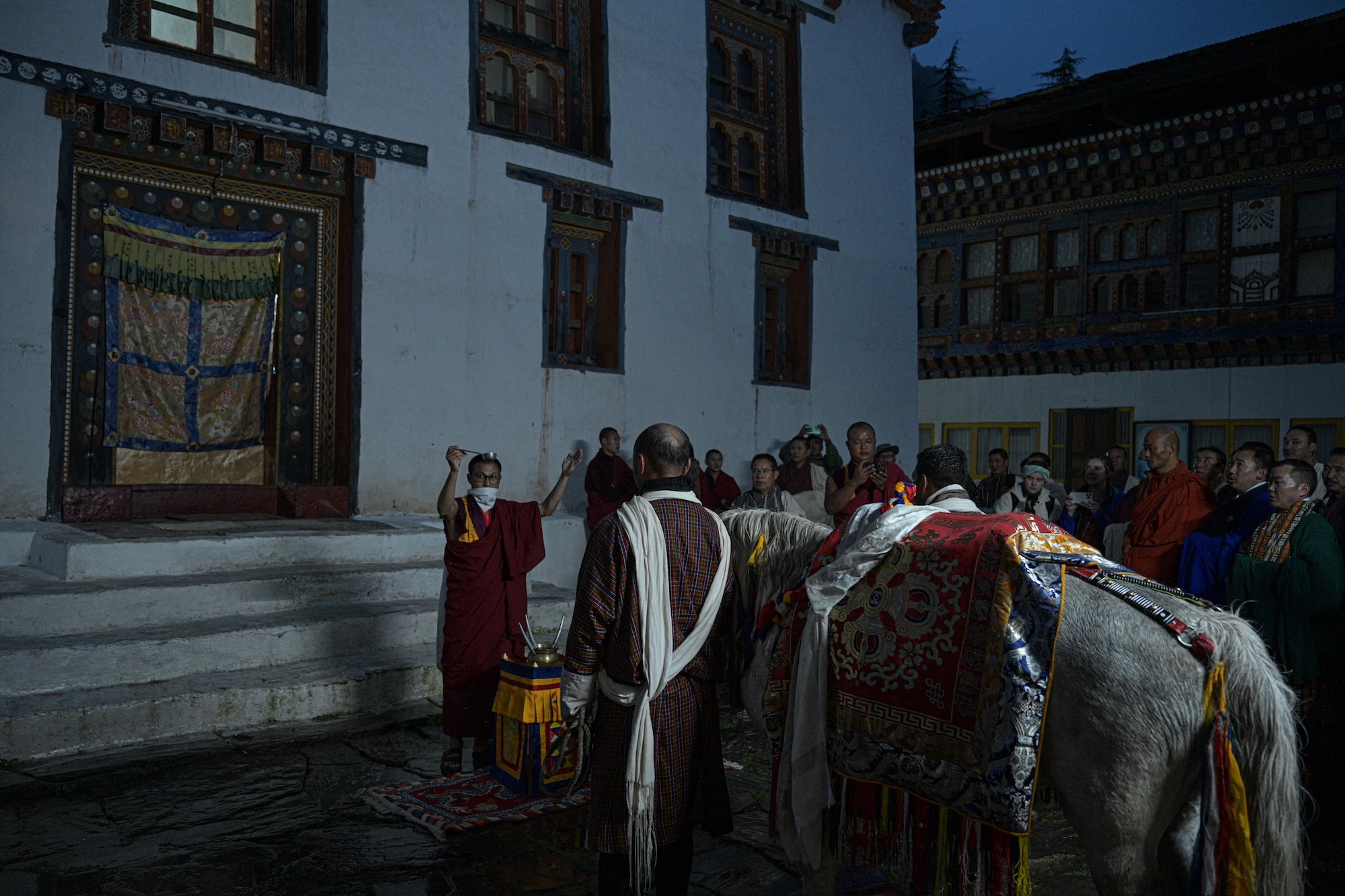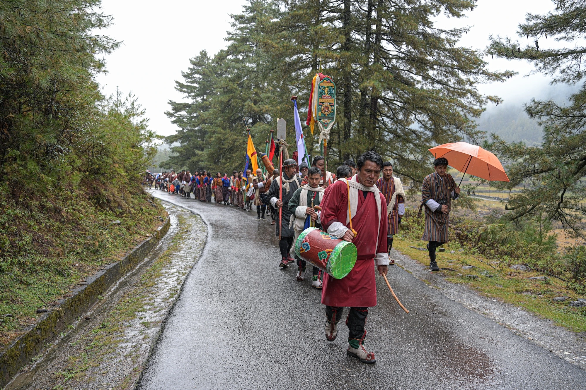 At 4:30 am on November 1, when even the leaves of autumn are too tired to fall, Bhutan’s longest chipdrel procession begins in the nation’s least visited valley. A spirit sits atop a white horse. Two men, dressed as Pazaps, or Bhutanese warriors, follow behind in colorful clothing. A hundred people line up outside of Lhakhang Karpo in the pre-dawn, bedecked in fine kiras and ghos. A gunshot blasts off the beginning of a 10km procession. This is the Ap Chundu festival, one of the most sacred celebrations of far western Bhutan.