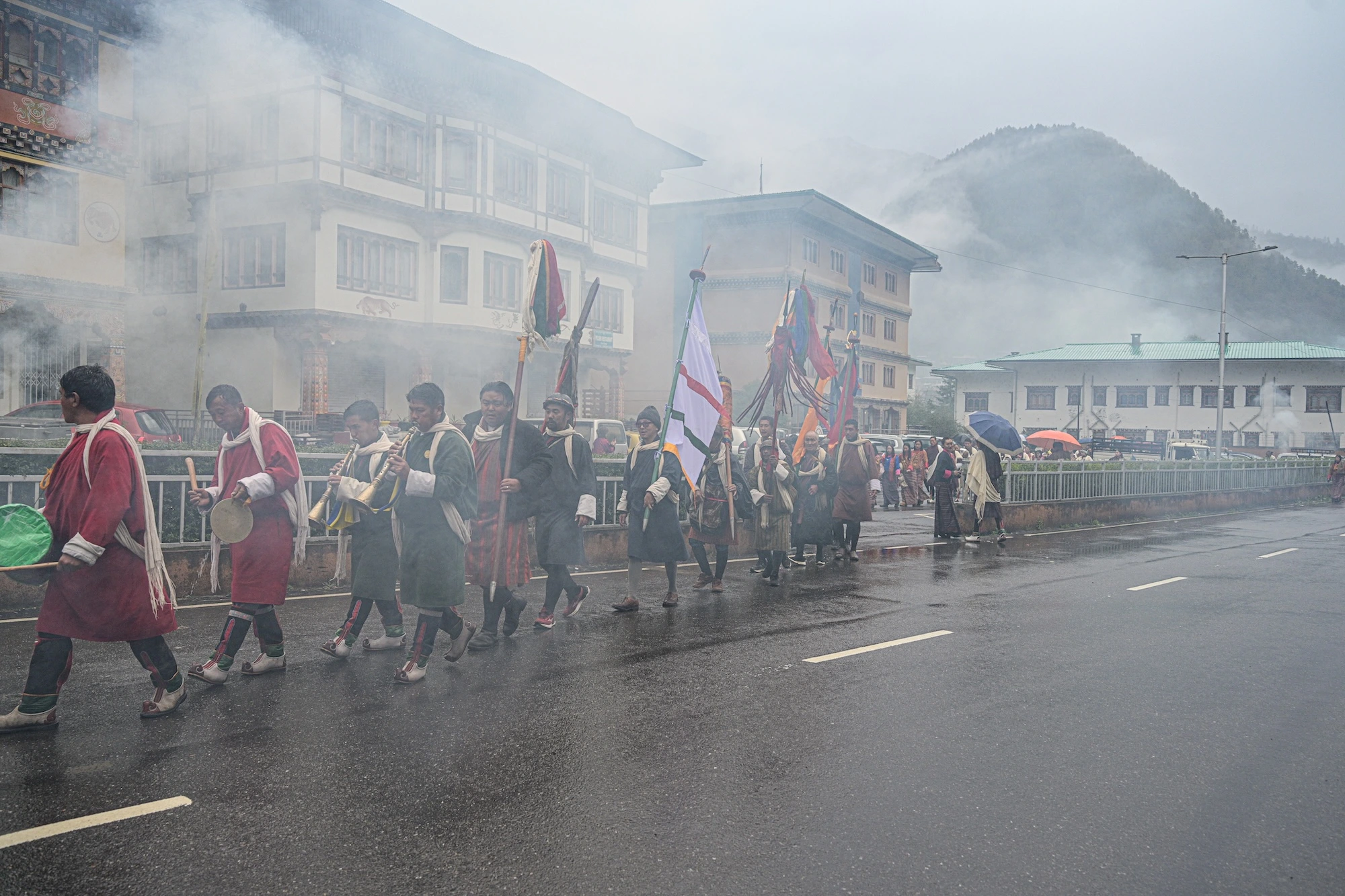 One of the festival’s claims to fame is that it is the longest Chhipdrel, or processional, in Bhutan. Beginning at Lhakang Karpo, the White Temple, on one side of the valley, a 10 km long procession ends at Jangkha-kha ceremonial ground. Along the way, there are multiple stops to offer marchang (to offer alcohol) and perform rituals at key sacred sites. The most significant stop is at the Nga-chhu Chorten, where the people of Baney offer marchang. The people of Yangthang also make offerings, as has been their tradition since ancient times. In the past, the Marchang offering- an essential component of the ritual- was performed only twice: once at the start and once at the end of the journey. The starting point was at the chorten near Nga-chhu, where the offering was made by the people of Bangayna, and the concluding ceremony took place at Yangthang. Today, Marchang is offered at several points along the route, symbolizing continuous blessings and protection throughout the journey.