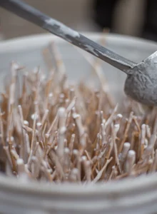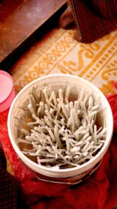 After the layering, the bucket is kept covered in a dark place for two days. After that begins the pouring of milk and layering the thick coated twigs with milk that is repeated for several times.