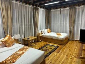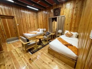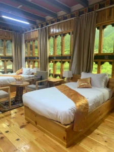 Tobgayling Mebar Heritage Hotel, a distinguished retreat housed in a traditional two-storied building, showcases Bhutanese architecture and brings Haa comfort to visitors. Constructed using ancient earth-rammed wall techniques, this eco-friendly structure is adorned with exquisite paintings that celebrate Bhutan’s rich artistic heritage. With nine rooms and suites, this hotel located at the entrance to Haa’s Yangthang Valley provides a cozy getaway.
